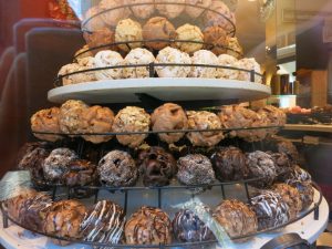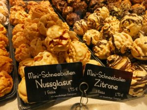 別名『中世の宝石箱』とも呼ばれるこのスイーツは、ベーカリーやカフェ、シュネーバル専門店など、町のいたるところで売っています。