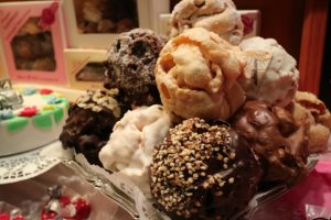 作り方はというと、卵をたっぷりと使い、セイヨウスモモの蒸留酒を加えて練った小麦粉の生地を紐状にカットして、ボールのように型に入れて油で揚げて作ります。