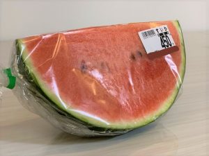 ひとりで食べきるには大きすぎるサイズの西瓜がある。むしろ、大きい西瓜がスーパーや八百屋の棚に多く並べられているといった方が正確かもしれない。近頃は、単身世帯や気軽に食べられることを売りにして、どのお店にもカット西瓜が見られるようになってきた。1玉買うには躊躇ってしまうけど、8分の一や10分の一サイズだったら買いやすい、といった需要が多いのだろう。フルーツ好きな人にとっても、様々な品種を食べてみたいという要望にも的確に応えられている商品規格だ。