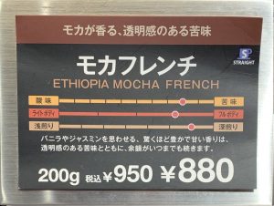 次なるコーヒーはこれだ。「モカフレンチ」。モカと付いているだけあって、チョコレート風味ということだろうか。コーヒーチェーン店でよく見かけるカフェモカという飲み物がそれを連想させる。