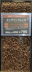 ちゃんと深煎りでありながら、煎り過ぎないぎりぎりのところを攻める焙煎感が見て取れる。煎り加減は「マンデリンフレンチ」と同じチャート位置だ。