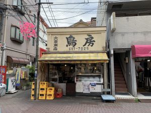お店の屋根越しには店名の「鳥房」という大きな字が、ひときわ目立たせている。その下に書いてあるのは、市外局番を除いた電話番号だ。年月を重ねた時間の重みを感じる。