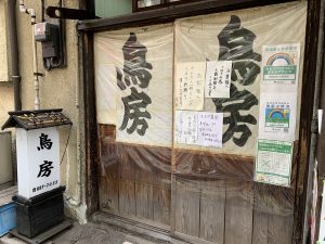 ここにも「鳥房」という大きな字で書いた店名が目に入ってくる。年季の入ったスライド式の木製でできた入口扉だ。こういう字を見ると、不思議と焼き鳥屋を連想してしまう。